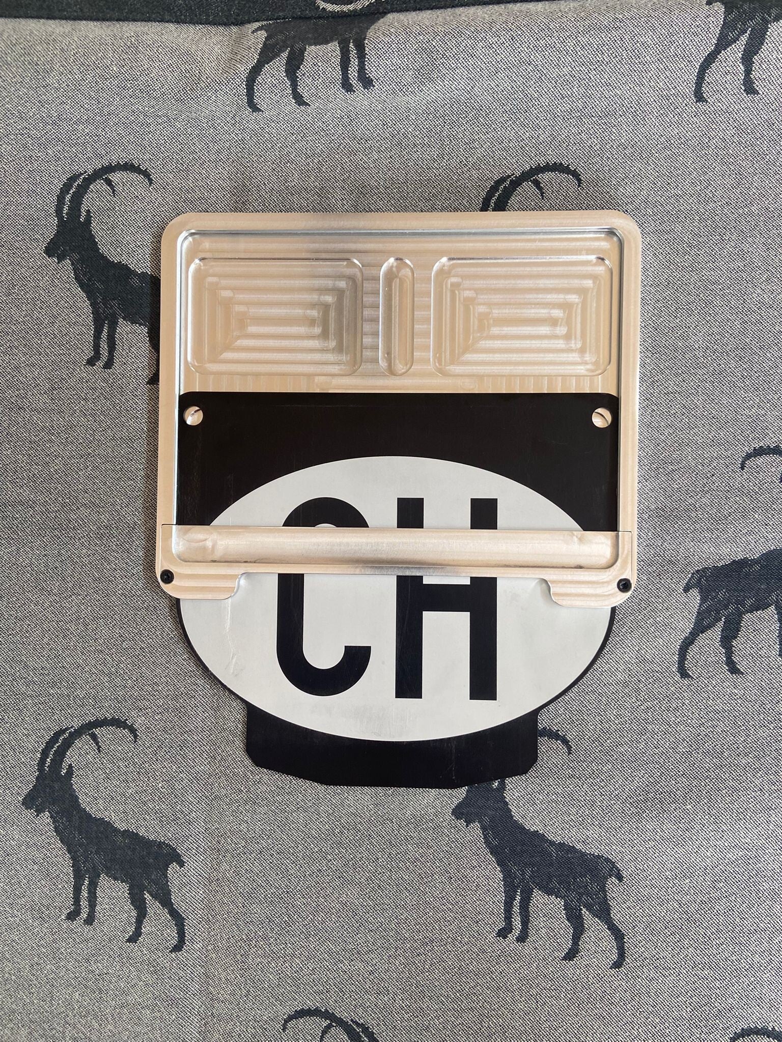 Die Nummer-Halterung ist auf Wunsch und gegen Aufpreis in verschiedenen Farben erhältlich, die CH-Platte bleibt immer schwarz